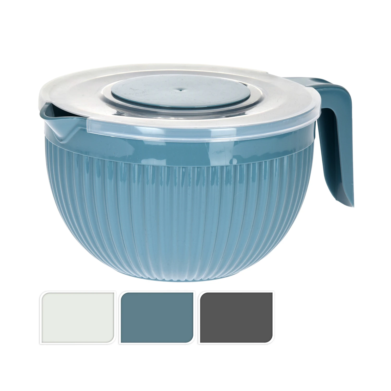 Deze mengkom met deksel en schenktuit van Alpina is ideaal voor bij het opkloppen van biscuitdeeg, crèmes, slagroom of icing. Het tweedelige dekselsysteem maakt het veel makkelijker om te roeren dan bij normale mengkommen. Bij het kloppen draai je alleen het middelste deel eraf, zodat er ruimte vrijkomt voor de garde, maar het deksel blijft aan de randen zitten zodat je keuken beschermd is tegen ongewenste spetters van opgeklopt voedsel. Om te voorkomen dat de opgeklopte lekkernijen uitdrogen kan het middengedeelte van het deksel afgedekt worden. Inhoud: 3,5 liter. Afmeting: Ø 22,5 cm x 14 cm. De mengkom is vaatwasmachinebestendig.